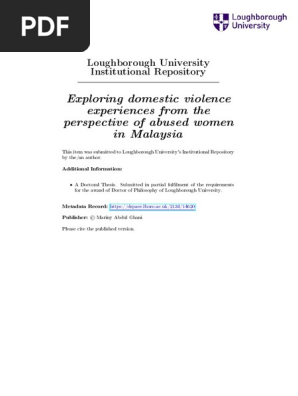 Exploring Domestic Violence Experiences From The Perspective Of Abused Women In Malaysia Domestic Violence Violence