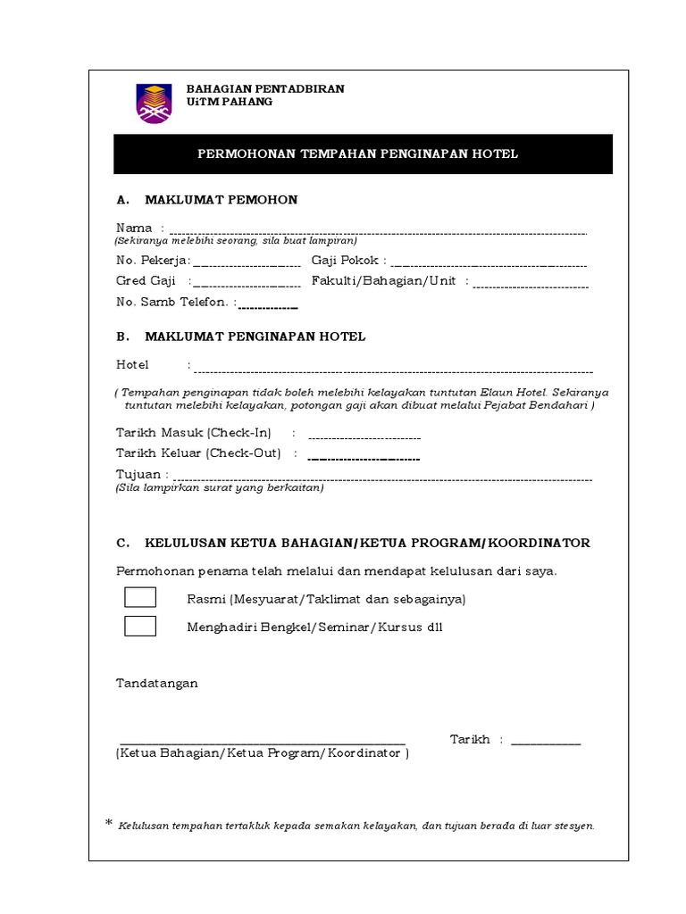 Surat Rasmi Permohonan Kerja Hotel Kuora J