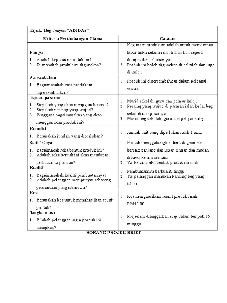 Borang Projek Brief Kumpulan 1 Tajuk Beg Tangan Serba Guna A Tajuk Projek 1 Apakah Jenis Produk Atau Perkhidmatan 2 Apakah Kegunaan Produk Ini Course Hero