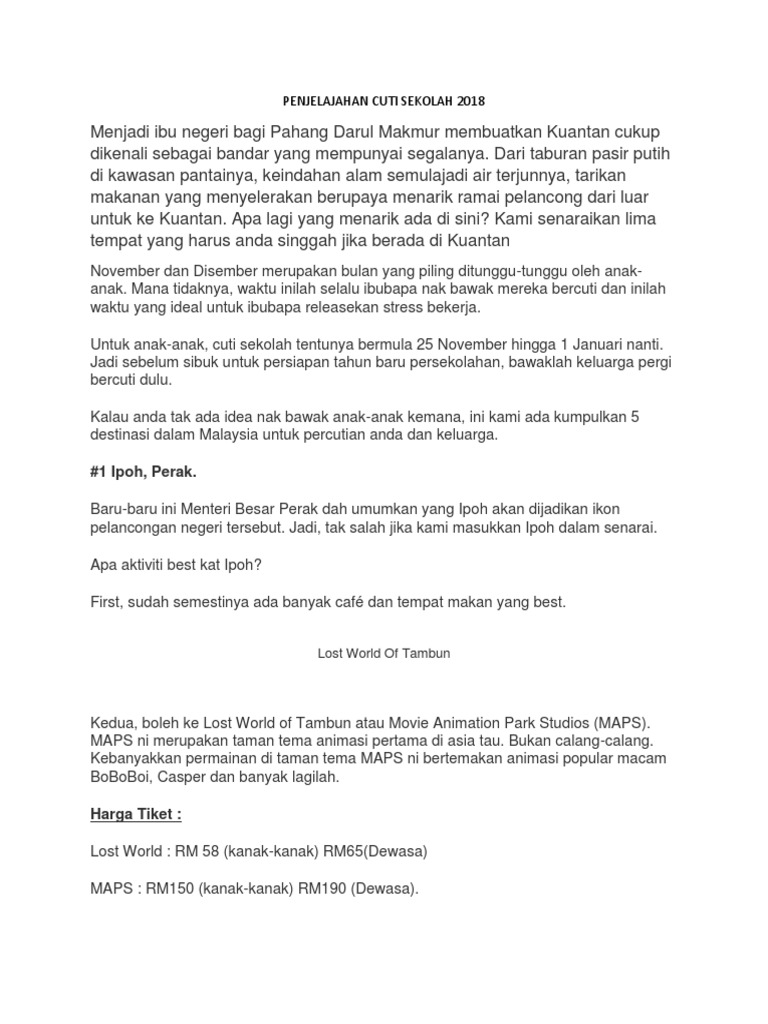 Contoh Karangan Pengalaman Pt3 Semasa Cuti Sekolah