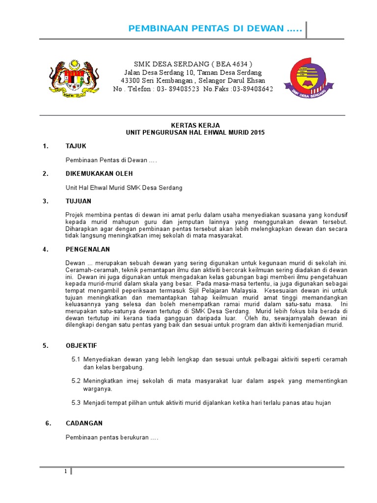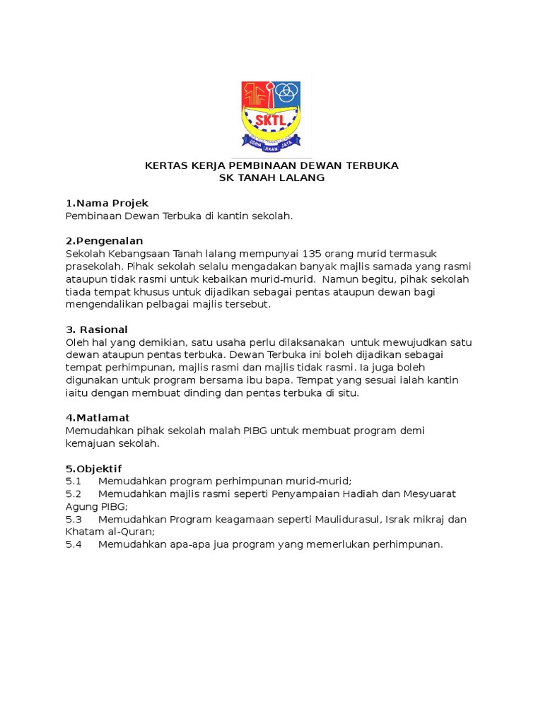 Kertas Kerja Cadangan Pembinaan Dewan Terbuka Skss Docx