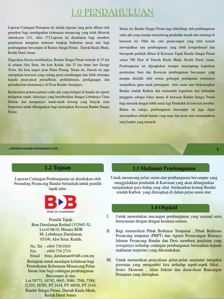 Contoh Laporan Cadangan Pemajuan Pusat Bandar