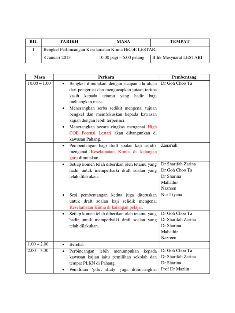Contoh Laporan Laporan Bengkel Perbincangan Keselamatan Kimia