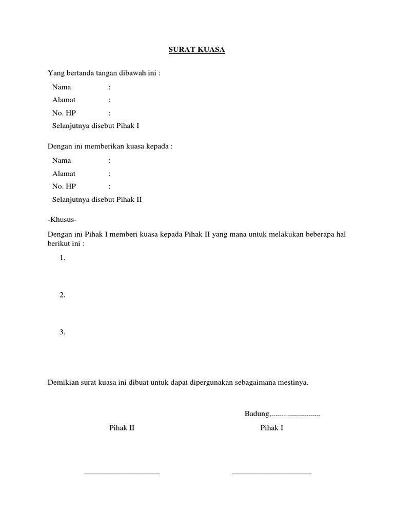 Download Contoh Surat Kuasa Doc