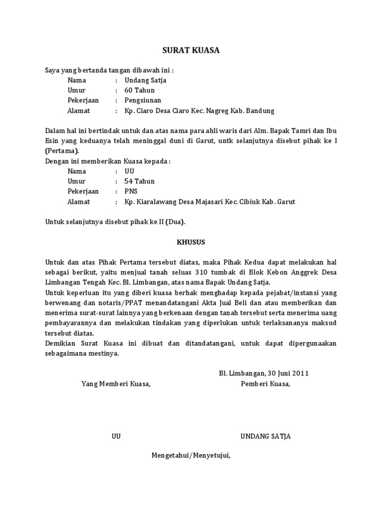 16 Contoh Surat Kuasa Tanah Untuk Jual Beli Dan Lainnya Contoh Surat