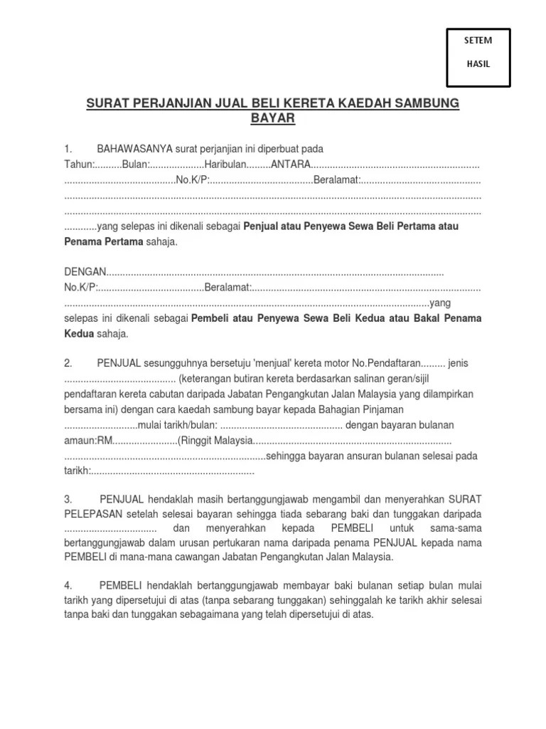 Pdf Surat Perjanjian Jual Beli Kereta Kaedah Sambung Bayar Roslina Mohd Zain Academia Edu