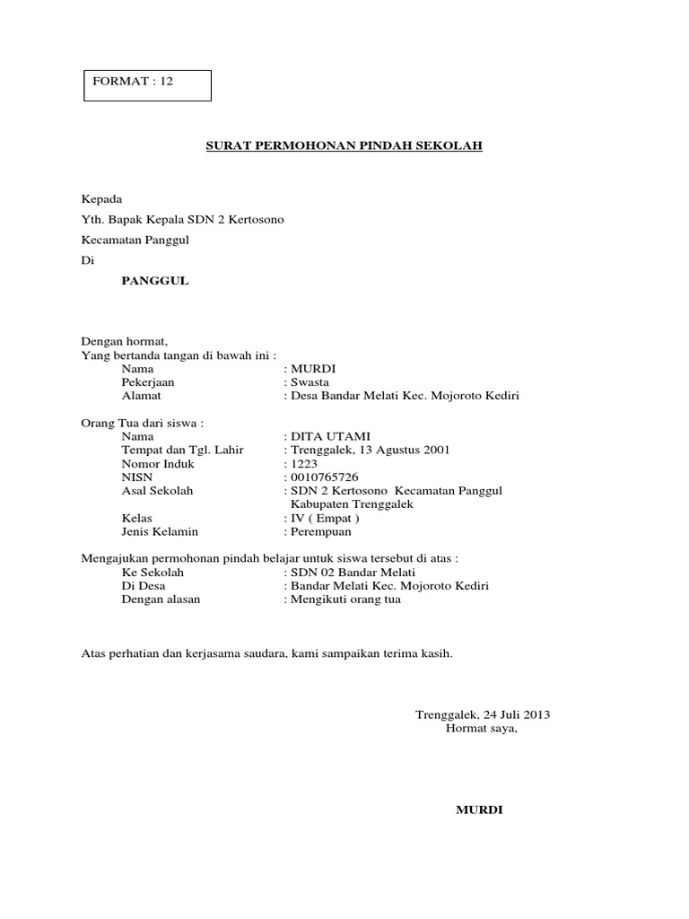Surat Permohonan Pindah Sekolah Dari Orang Tua Persoalan O