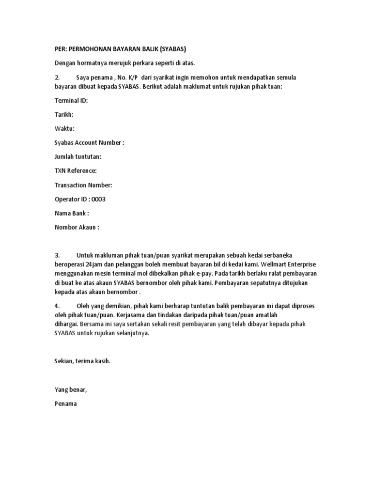 Menuntut Contoh Surat Permohonan Tuntutan Bayaran Balik