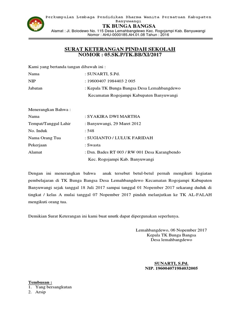Download Surat Keterangan Pindah Sekolah Anak Paud Format Word Asdar Edu