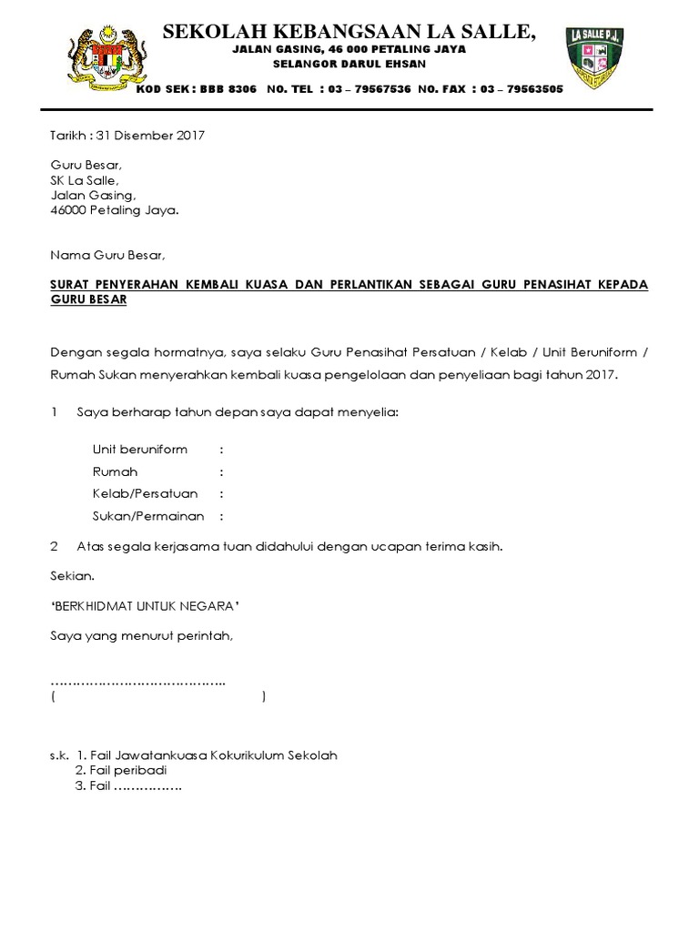 Lampiran 11 Contoh Surat Penurunan Kuasa Pengetua