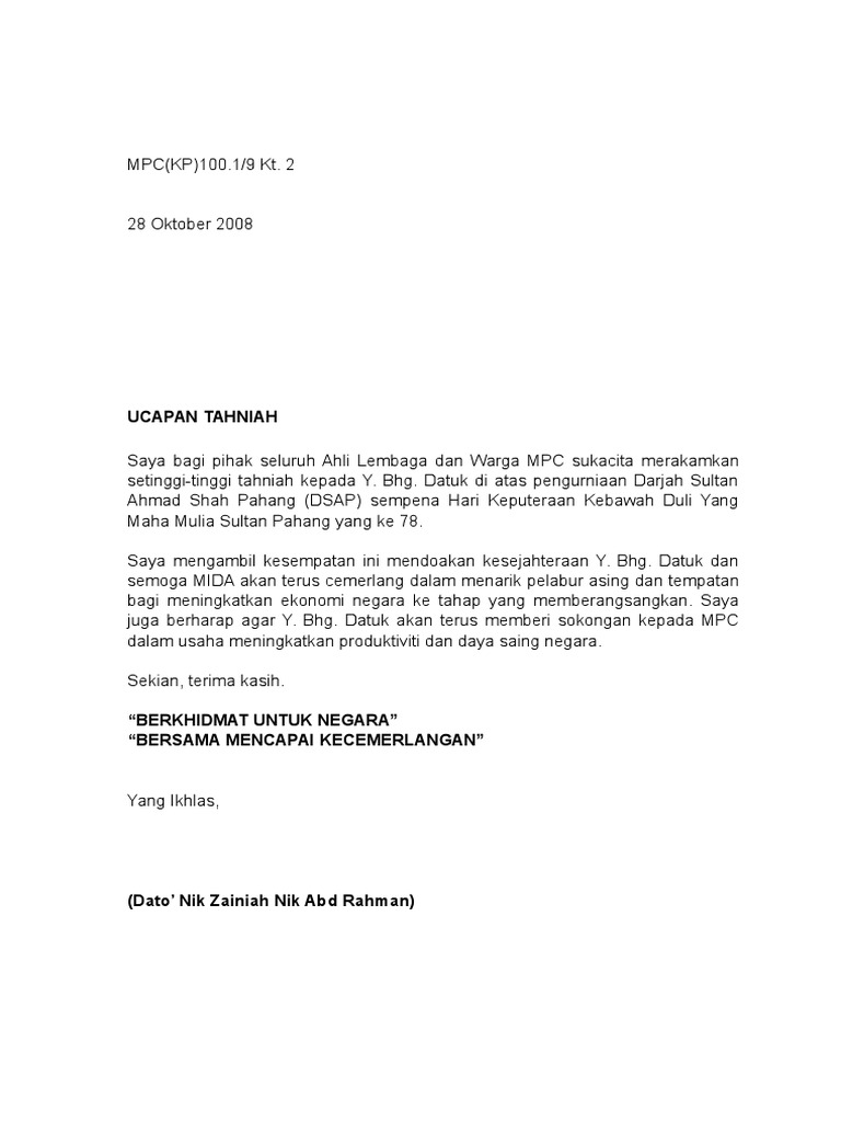 Surat Rasmi Ucapan Tahniah Surat Rasmi R