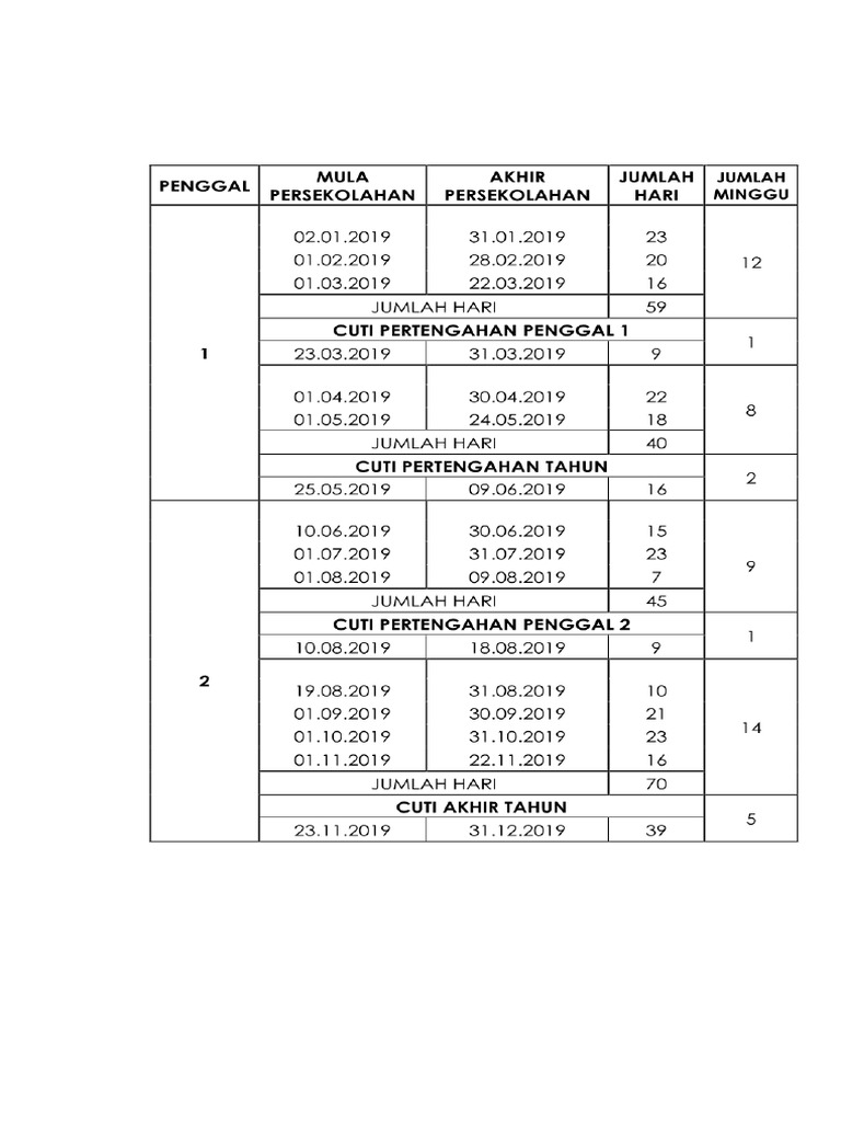 Kalendar Cuti Sekolah Cuti Umum 2019 Takwim Persekolahan Kpm