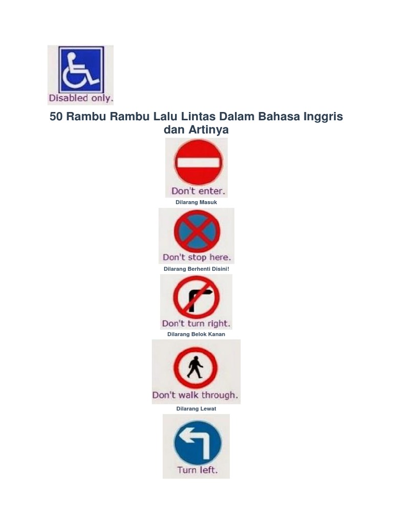 Rambu Rambu Lalu Lintas Dalam Bahasa Inggris Pdf Document