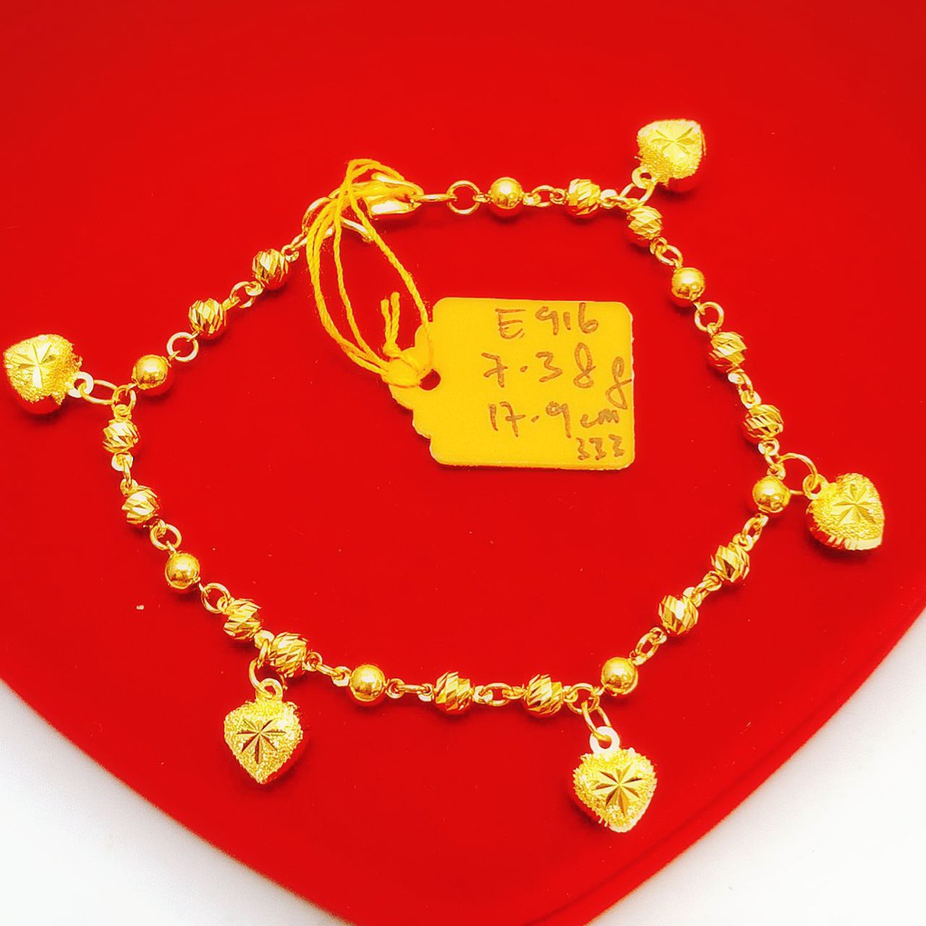 916 22k Gold Heart Dangle Bracelet Rantai Tangan Gantung Love Emas Lazada