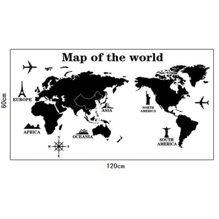 Jual Hiasan Dinding Besar Peta Dunia Hitam Putih 120x60 Kab Karawang Squared Id Tokopedia