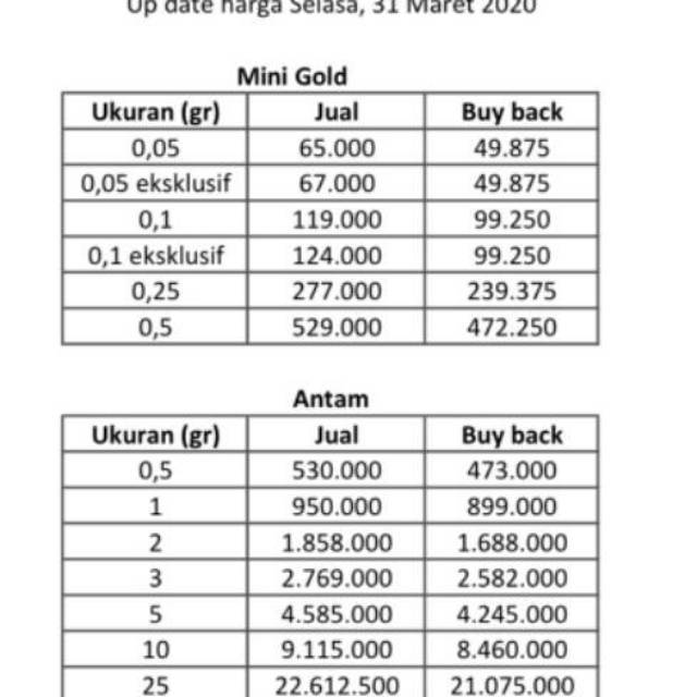 Harga yang kami jual di toko ini kami update setiap hari nya mengikuti harga emas dunia. Kepingan harga beli harga jual. Emas mini 0 1 gram em01 logam mulia 24 karat emasmini minigoldrp141 000.